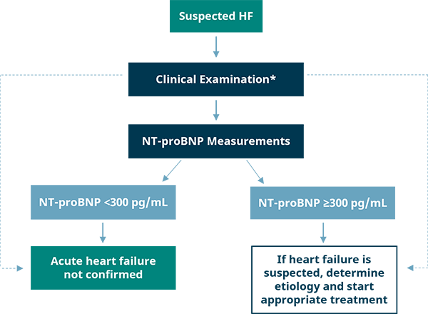Les lignes directrices pour diagnostiquer une insuffisance cardiaque aigüe recommandent que tous les patients suspectés d’être atteints d’une insuffisance cardiaque fassent l’objet d’un bilan diagnostique à l’aide de peptides natriurétiques, tels que le NT-proBNP et, le cas échéant, effectuent le dosage en biologie délocalisée [4].