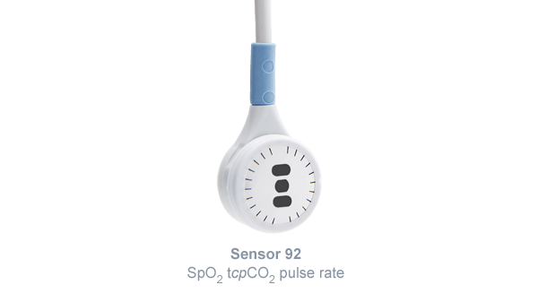 La tcpCO2 est mesurée à l’aide d’un capteur placé à la surface de la peau. Un capteur tcpCO2 utilise le principe Stow-Severinghaus ; le CO2 réagit avec l’eau pour former de l’acide carbonique et se dissocie en H+ qui sont interprétés à travers un élément de verre pH. Après conversion, l’algorithme du capteur génère une tcpCO2 en mmHg (millimètres de mercure) ou kPa (kilopascals).